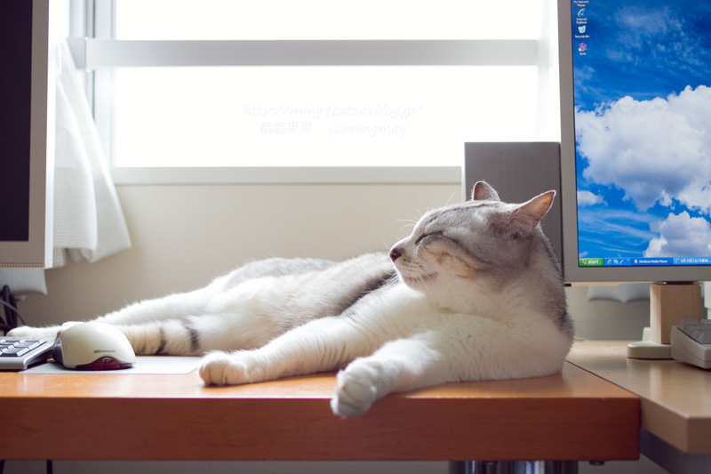 PCの隣には猫がついているのが