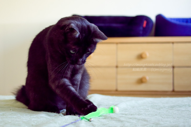 動かないじゃらしの心配をする小僧ちゃんなの (^^)