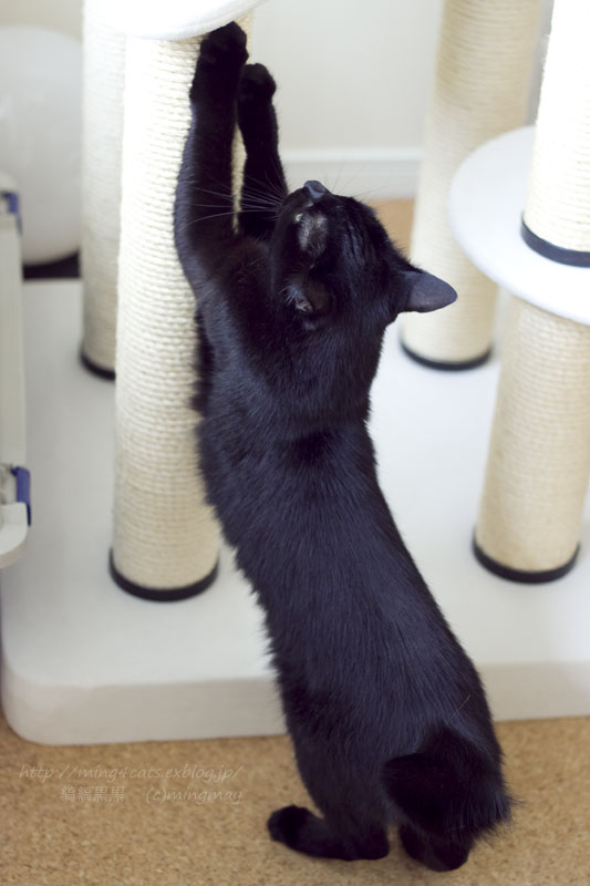 猫タワーの麻紐は、思いっきりばりばりできていいの!(^^)b